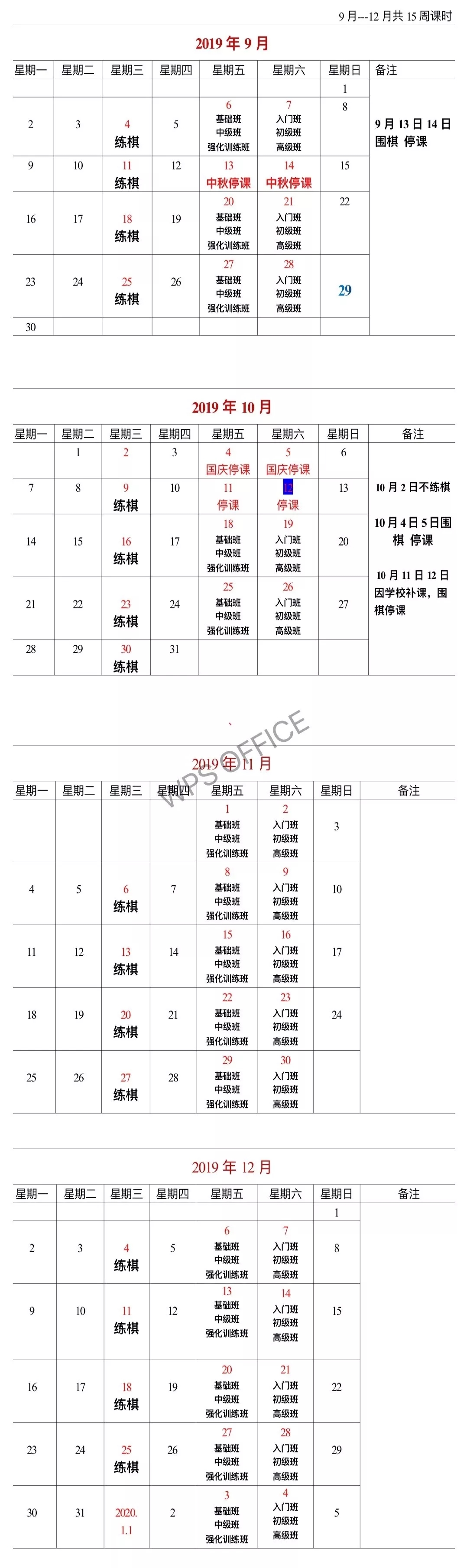- 2019-12-092019年秋季课程表(新康威中心教学点)