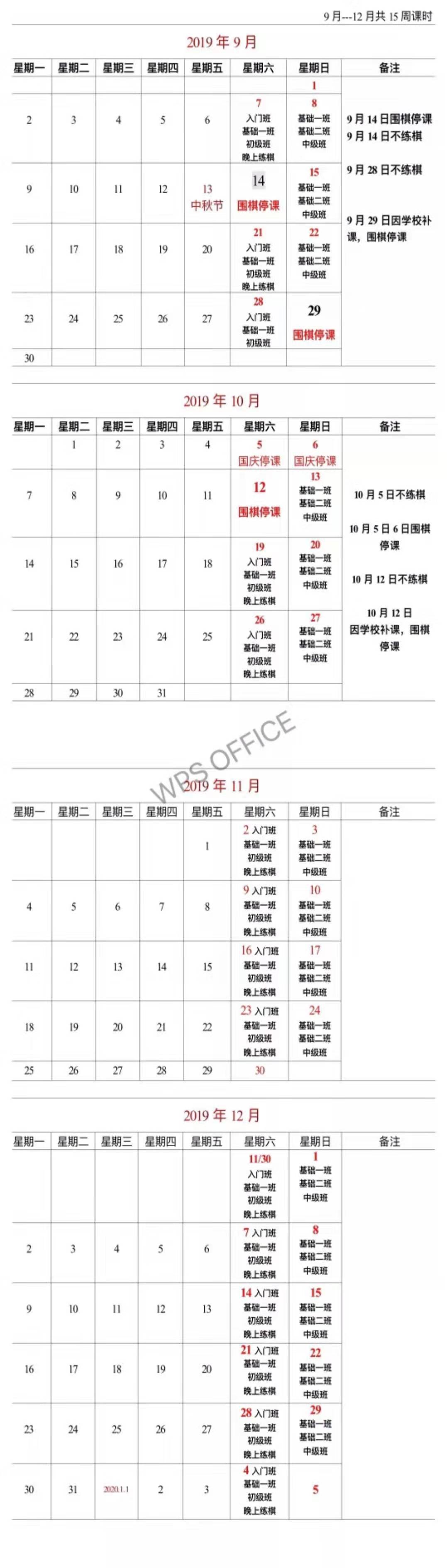 - 2019-12-092019年秋季课程表(新康威中心教学点)