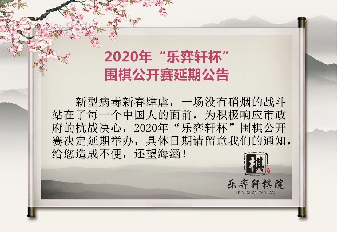 - 2020-02-03【赛事延期】2020年增城区“乐弈轩杯”围棋公开赛延期公告
