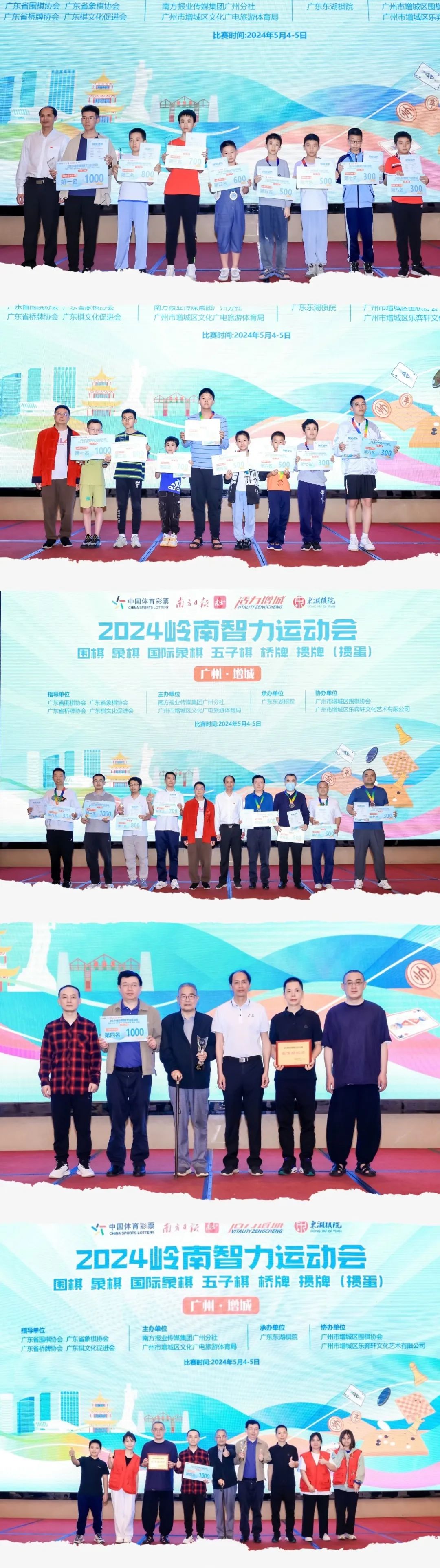 由南方报业传媒集团广州分社、广州市增城区文化广电旅游体育局联合主办,广东东湖棋院承办,广州市增城区围棋协会、广州市增城区乐弈轩文化艺术有限公司协办的2024岭南智力运动会,含围棋、五子棋、中国象棋、国际象棋、掼蛋、桥牌等六个赛事项目,来自岭南(含港、澳、台地区)近1500人齐聚增城,于5月4、5号圆满完成。